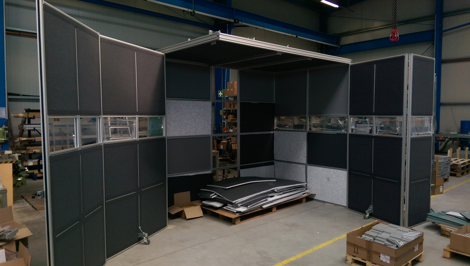 Ob zur Abschirmung lärmintensiver Maschinen oder zur Schaffung von ruhigen Zonen – unsere Schallschutzeinhausungen bieten eine effiziente Lösung für unterschiedlichste industrielle Anforderungen.
