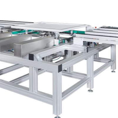 The production process for solar modules demands jolt and vibration-free transport without accumulation operation. To accomplish this, the conveyor sections are divided into short segments: