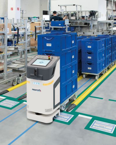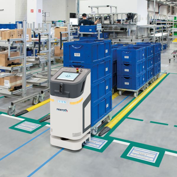 The driverless transport system (AGV) from Bosch Rexroth for transporting small load carriers (SLCs).
