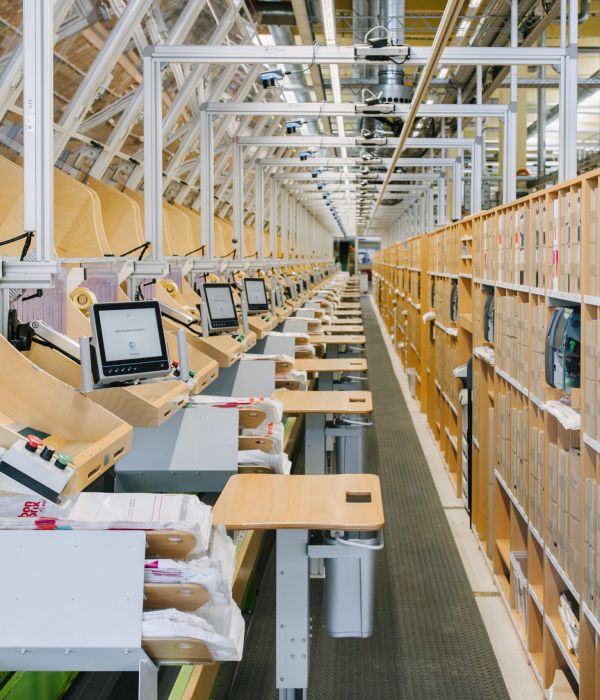 ShippingThe shipping area benefits from customised solutions that enable employees to pack and label parcels quickly and accurately. By using conveyor technology that is specifically tailored to the needs of the work process, employees can carry out their tasks efficiently without suffering physical discomfort.